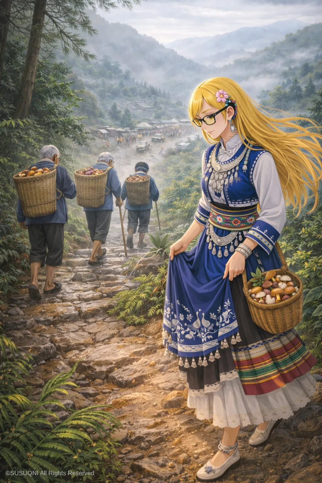 我坐在古道旁的石台上,泡水节(傣族泼水节)刚过不久,空气里似乎还残留着一点水汽和欢笑的余温。想到明天要买几卷扎染的布和一段傣锦带回去——那些蓝白的渐变和金绿的光泽,将在工作室里等待很久,直到某一天它们找到自己该去的位置:也许是一件外套的内衬里那一小块蓝,也许是手袋的拼接面料里那一条金线。